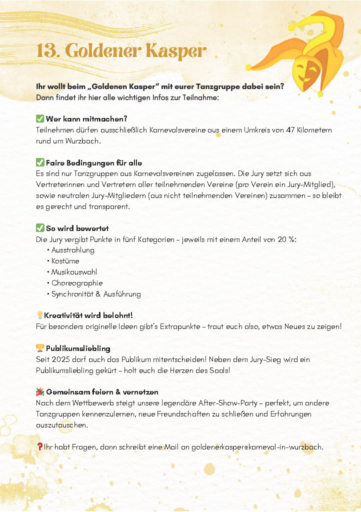 Anmeldungen an: goldenerkasper@karneval-in-wurzbach.de